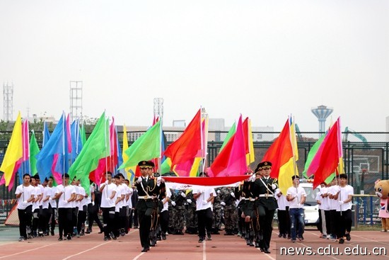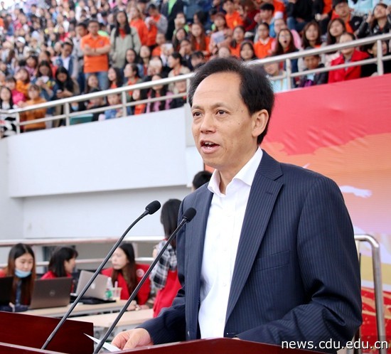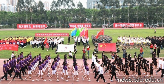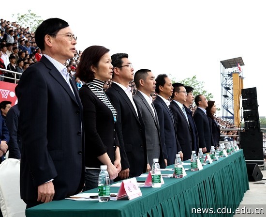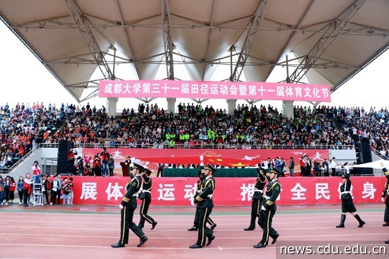 四川省教育厅体育卫生与艺术教育处副处长唐克红,四川省成都市体育局副局长何荣波应邀出席开幕式,校党委书记罗波,校长王清远,校党委副书记宋辉,副校长苏蓉、冯炼、赵钢、彭晓琳出席活动并在主席台就座。校党委副书记、纪委书记、校体委主任易贤文主持开幕式。各职能部门、各业务直属部门和各附属单位负责人及师生代表到场参加开幕仪式。罗波宣布第三十一届田径运动会暨第十一届体育文化节正式开幕。