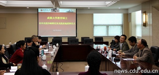 王清远向来自成都市教科院、电子科技大学附属小学、成都市第三幼儿园等10个单位的实践导师及基地代表介绍了学校研究生教育的发展情况。他强调,学校高度重视教育硕士专业学位授权点建设,此次校外导师选聘和实践基地授牌是进一步深化建设的重要举措,是办好教育硕士专业学位授权点的重要支撑。希望各位导师和各实践基地对硕士点建设多关心、多支持,共同努力把太阳成集团tyc122cc入口教育硕士办出影响、办出特色,建设成为国内教育硕士规范办学、高质量办学的典范。