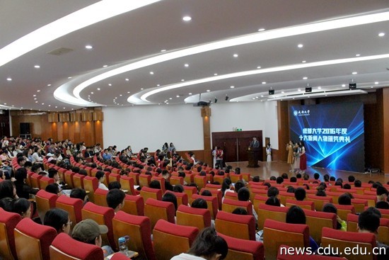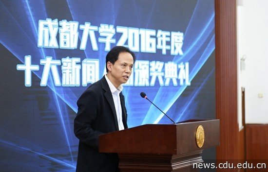 罗波代表学校党政对十大新闻人物殊荣获得者和十佳校园新媒体获奖团队表示祝贺。他高度赞誉获奖师生和团队在平凡岗位上,兢兢业业工作学习,创造了卓越成绩,是广大师生学习的榜样。他强调校园新闻宣传工作,尤其是新媒体建设工作在鼓舞精神、传播文化、促进发展上具有重要作用,要努力讲好成大故事,传播正能量,弘扬主旋律。他说,学校面临成都加快建设国家中心城市的难得历史机遇,也面临突破瓶颈、跨越发展、迈上新台阶的重要挑战,尤其需要发挥榜样的力量,鼓舞精神,凝聚力量,坚定“发展是第一要务”的思想共识。