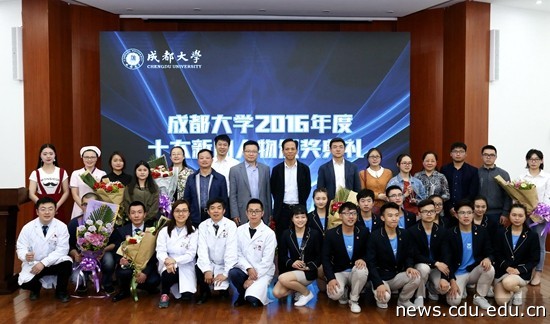 小人物,大能量;榜样力量,引领前行。经过网络展示和2万余人次的师生网上投票,科创团队领头人王跃华、省劳动模范游莉、带着奶奶上大学的刘琳同学、水中“小飞鱼”的邓越、跪地救人医生肖强、最坚强求医少女周阳、温暖的鞋垫奶奶左水仙、学生创客秦树、学生事务服务中心团支部、奔走在铁路线上的医疗列车服务队等10名普通成大人和工作团队获评为学校2016年度十大新闻人物。没有轰轰烈烈的事迹,没有声名显赫功绩。发生在他们身上的故事,因积极乐观、热忱奉献,因爱岗敬业、踏实有为,得到校园媒体和国内外众多媒体的广泛报道,赢得广大师生及社会关注和点赞,也深深感动着现场观众。