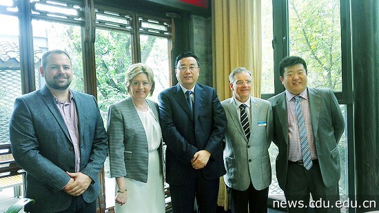 本网消息(图、文/欧玉松)2016年6月24日,市长助理、校党委书记毛志雄会见了来蓉出席2016成都全球创新创业交易会的成都国际友城澳大利亚珀斯市市长丽莎·斯嘉菲迪及其代表团一行。