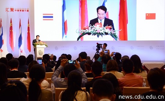 本网消息(文/张婷 图/西苑)为增进泰国侨界杰青对中国发展战略的理解,推动省内高校与泰国加强合作交流,6月24日上午,“中泰杰出青年论坛”在锦江宾馆举行,本次论坛由国务院侨务办公室主办,四川省人民政府侨务办公室、共青团四川省委、四川省青年联合会承办,太阳成集团tyc122cc入口协办。国务院侨办副主任谭天星、四川省政府副省长朱鹤新、四川省政府副秘书长赵卫平、四川省侨办副主任文甦、共青团四川省团委副书记唐经天等领导出席。我校校长、四川省泰国研究中心主任王清远作为协办单位代表应邀出席论坛。