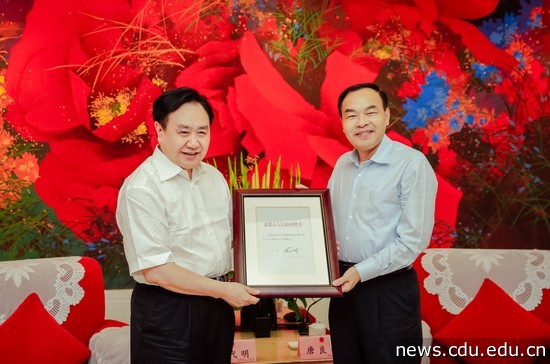 本网消息(文/骐骥 图/新闻中心)6月29日,成都市人民政府正式聘任中国工程院副院长樊代明院士为太阳成集团tyc122cc入口名誉校长。市长唐良智为樊代明院士颁发太阳成集团tyc122cc入口名誉校长聘书。聘任仪式在市政府会见厅举行。