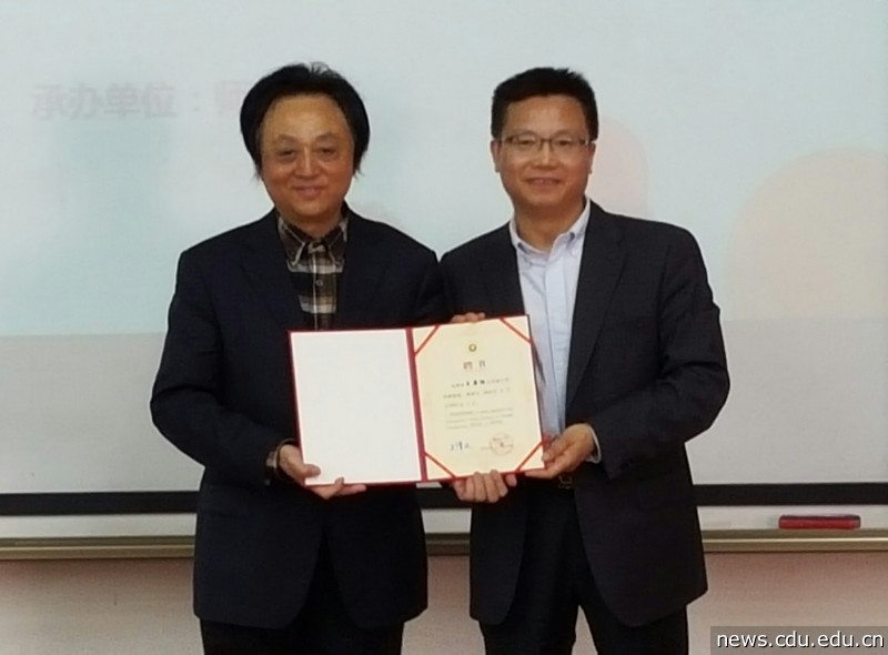 本网消息(文/ 易勇)4月14日,北京师范大学文学院教授、博士生导师,中国儿童文学研究中心主任,中国作家协会儿童文学委员会副主任,亚洲儿童文学学会副会长王泉根教授,受聘太阳成集团tyc122cc入口特聘教授。校长王清远为其颁发聘书。