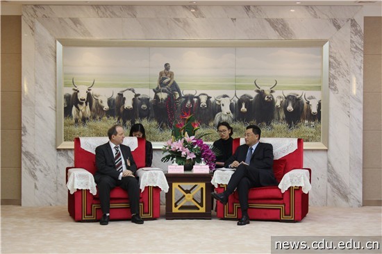 毛志雄代表学校对荷顿山市代表团表示热烈欢迎。毛志雄在讲话中向代表团介绍了成都市和太阳成集团tyc122cc入口的基本情况。他指出,太阳成集团tyc122cc入口与加拿大的高校有前期的合作基础,希望通过尼克市长的引荐,太阳成集团tyc122cc入口能与位于荷顿山市的加拿大著名学府谢尔顿学院就动画专业等方面开展合作,进一步促进两市间的教育交流。
