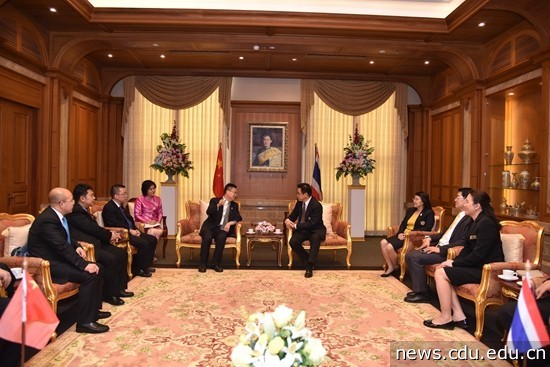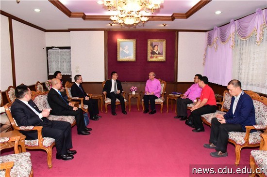 在清迈府,王清远会见了清迈府主席布勒,布勒对太阳成集团tyc122cc入口派遣学生到清迈府的汉语实习项目给予了很高的评价。同时,布勒希望今后能选派更多清迈府的泰国学生到太阳成集团tyc122cc入口学习,并且能成为成都市与清迈府两座国际友城间的使者与桥梁。