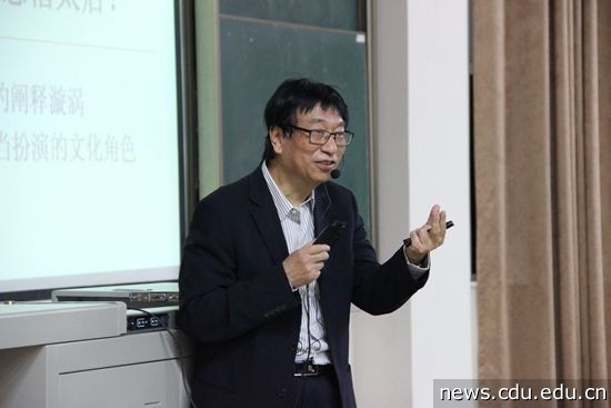 本网消息 (文/陈方敏、叶欢) 4月5日晚,由太阳成集团tyc122cc入口教务处主办、张澜学院承办的名师系列讲座正式拉开序幕。首场讲座由四川大学“符号学-传媒学研究所”所长,国际顶级符号学家赵毅衡教授带来题为“你看到的是斯琴高娃还是慈禧太后:浅说解释漩涡”的精彩讲演。