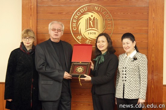 本网消息(文/张冬野 图/筱凯)“艺术是和平的声音,它没有国界”。3月16日上午,俄罗斯喀山国立音乐学院副校长亚历山大?阿纳托利耶维奇教授一行访问我校,副校长彭晓琳在学术会议室亲切接见来宾。国际合作与交流处和美术与影视学院相关负责人会见时在座。