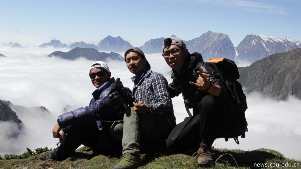 拍摄小组九顶山上合影 郑传秋、周兵、高铭扬(从左至右