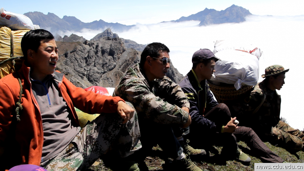 第三天,海拔升至5000多米,往前只有一条不到一米宽的小径,旁边是深不可测的悬崖。“根本不敢往下看,几千米的悬崖摔下去就完了”他们两手提着设备,紧贴着岩壁,心提到了嗓子眼。“我们走这条路线已经是最容易的一条,近似‘观光路线’,而巡山队平时巡山的路线更加艰险,而他们却一直义务地做着这件事。”