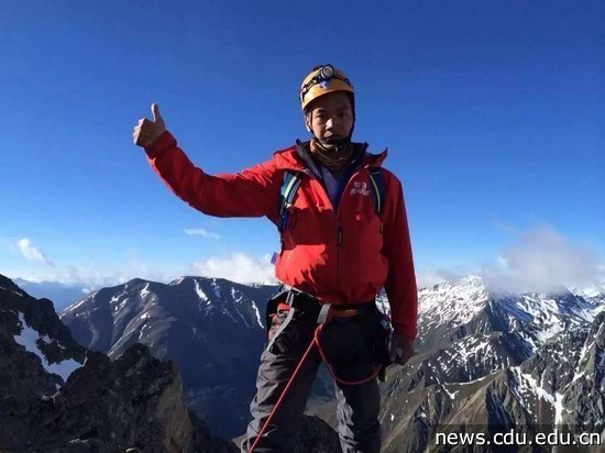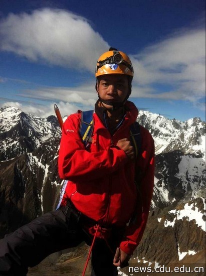 他是唯一一位入选“2015雪花勇闯天涯——大学生挑战未登峰”团队的川籍大学生。海拔5119米的山峰,他仅用时3小时20分冲顶,成为队伍第一个登顶的战士。