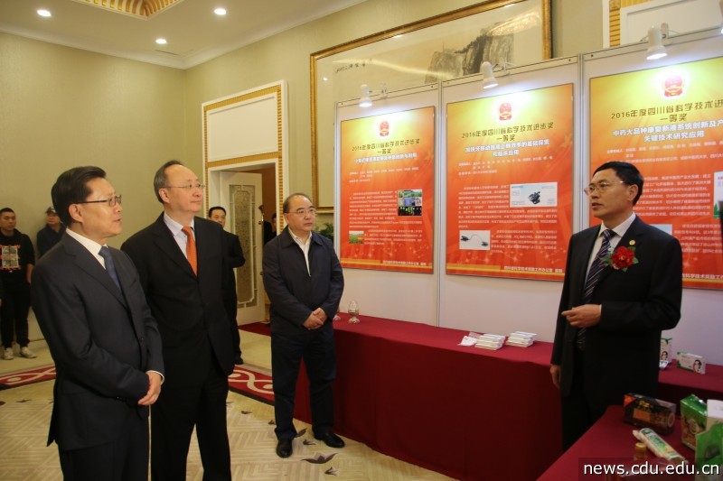 本网消息(文/邹亮)4月10日上午,四川省委省政府在成都金牛宾馆举行2016年度四川省科学技术奖励大会,隆重表彰为我省科技事业做出突出贡献的科技工作者。我校农业部杂粮加工重点实验室主持完成的成果《苦荞麦新产品开发关键技术研究及产业化示范》获得2016年度四川省科技进步一等奖。该项成果实现了我校省部级政府奖励一等奖零的突破。副校长赵钢和医学院副院长邹亮作为代表参加颁奖仪式。