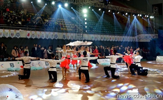 本网消息(文、图/邓嘉 刘蓉)12月18日,在成都体育学院举行的“律动健康 舞动中国”——IDSU第五届国际学生运动舞蹈 (中国区) 大赛、2016年首届四川省运动舞蹈大赛暨2017年国际运动舞蹈亚太公开赛四川选拔赛中,我校健美操舞队获得3个一等奖,两个二等奖,体育舞蹈队获得了4项第一名、1项第二名和3项第三名的优异成绩。