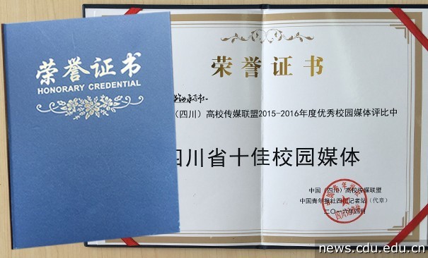 本网消息(文/杨柳 图、骆文佳)4月23日至24日,中国(四川)高校传媒联盟2016年会暨第七届四川高校传媒论坛会议在四川农业大学(成都校区)举行,中国(四川)高校传媒联盟中的89家会员媒体出席活动。我校学生处大学生就业指导中心主办的《远路》杂志社作为四川校媒联盟的会员媒体受邀参加,并荣获“四川省十佳校园媒体“,继2012年后再次获此殊荣。