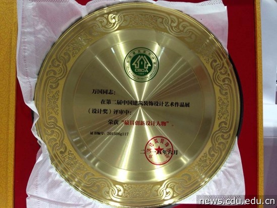 本网消息(文/罗斌)2015年6月2日至5日,由中国建筑装饰协会主办,中国建筑装饰协会设计委员会承办的第二届中国建筑装饰设计艺术作品暨中国建筑装饰设计奖颁奖典礼在上海国家会展中心举行。我校美术学院万国副教授荣获“2015年最具创新设计人物奖”。