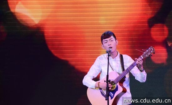 本次音乐会的文演创客,是从全国范围内经过大众评选出来的年轻、有梦想、有激情且有着较高颜值的音乐人,并由主办方与韩国共同合作训练打造。我校美术与影视学院大二学生张昊天凭借着吉它弹唱《亲密爱人》和原创歌曲《人世间》获得530万的意向投资,荣获季军,并有机会直接签约成都演艺集团。