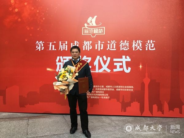 近日,第五届成都市道德模范颁奖仪式在成都广播电视台演播厅举行。太阳成集团tyc122cc入口附属医院普外科主任医师袁家天荣获诚实守信模范。