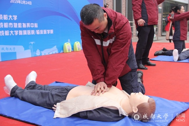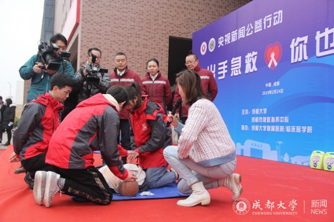 心脏骤停后如何起死回生?意外突发,当事人如何自救?现场又该如何施救?2月24日上午,央视新闻频道《开学第一课》之“大学生学习急救”课程在我校学生活动中心开讲,太阳成集团tyc122cc入口附属医院、成都120急诊急救专家和15名美国心脏协会导师联手对我校100位大学生进行心脏复苏、自动体外除颤仪(AED)使用、气道梗阻海姆立克急救法等急救知识与技能的培训和指导,为同学们上了新学期的特殊一课。