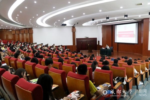 市司法局法宣处处长袁小兵,副处长张娅,龙泉驿区司法局党组书记成龙、局长顾蓉蓉,学校党委宣传部、法学院等相关单位负责人,近三百师生聆听讲座。