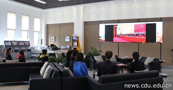 学校各二级单位在办公室、会议室、活动室、教室等地就近就便组织本单位师生员工观看了开幕会直播。