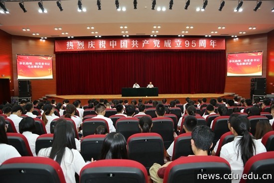 市长助理、校党委书记毛志雄出席庆祝大会并作重要讲话。校党委副书记、纪委书记易贤文主持大会。学校党委职能部门负责人;各学院党委(总支)书记、副书记;学生党支部书记和新党员共约500余人参加大会。