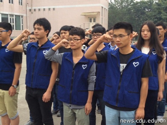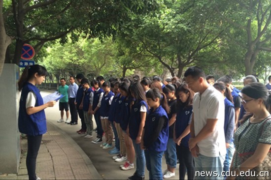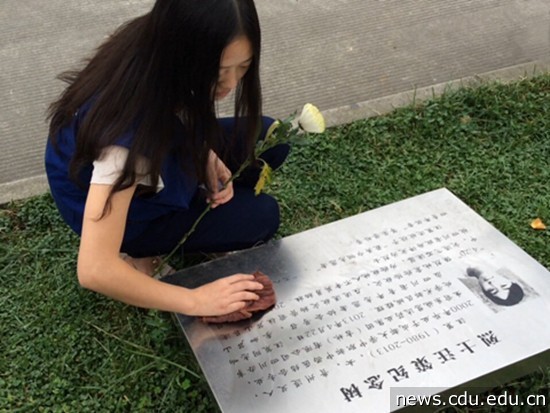 怀着对两位校友烈士的追思和崇敬,60余名师生代表先后来到“陈英路”和“汪策纪念碑”前,擦拭路牌、纪念碑,为烈士默哀、献花,并进行集体宣誓。“革命先烈,浩气长存;继承遗志,自强不息;扬荣拒耻,成贤成才;奋发有为,勤学报国;振兴中华,再造辉煌。”师生代表们的铮铮誓词久久回荡在校园上空。