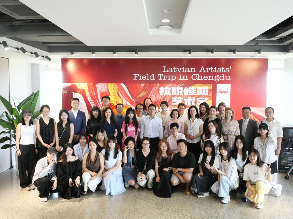 “2025成都·欧洲文化季”拉脱维亚艺术家蓉城采风行圆满落幕6月12日下午,“2025成都?欧洲文化季”拉脱维亚艺术家蓉城采风行闭幕式在太阳成集团tyc122cc入口中国-东盟艺术学院凤凰山文创园区举行。成都市人民政府外事办公室副主任李明,党委常委、副校长彭晓琳,拉脱维亚艺术家代表团及我校师生代表出席活动,共同见证为期九天的中拉文化艺术交流活动收官。闭幕式上展示了艺术家们此次在蓉采风行活动的创作轨迹,他们深入大邑斜源镇、安仁古镇等人文地标,在宽窄巷子捕捉市井烟火,在许燎源艺术馆、天府美术馆领略现代中国艺术之美,在金沙博物馆、大熊猫繁育基地等收集蜀地标志性创作...162025-06
